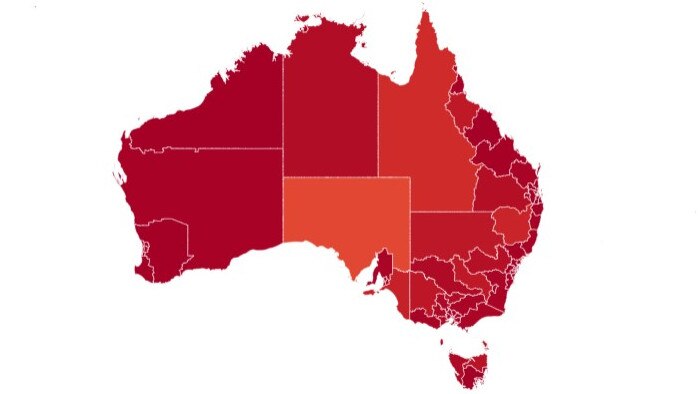 Essential workers are being pushed into the red across most of the country, with affordability down to extreme single digits in most places. Source: Anglicare Australia. Alarming national heatmaps warn